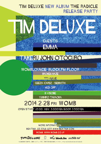 ティム・デラックスの今回の日本公演は、DJ EMMAとTAKERU JOHN OTOGUROが東京公演に出演することがすでにアナウンスされている。それに続いて、WOMBのラウンジ・フロアのプロデュースをインターネットラジオ『block.fm』が務めるという。
