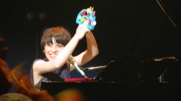再びピアノへ向かうとステージはほとんど灯りのない真っ暗な空間に。彼女の類まれなる歌声が、暗闇だからこそよりいっそう聴覚に訴える、「ひだり手」を弾き語り。そしてバンドメンバーを呼込むと新曲「らしくないし、」を初めてバンドでライブ披露。7月にリリースしたシングル「消えてなくなれ、夕暮れ」、そしてまたも新曲「歩いてゆくよ」を立て続けにファンへ届けた。ロングヒットを記録した「雲の向こう」(ハイチオールCプラス CMソング)では、ファンとの合唱でまたも会場に大きな一体感が生まれ、「Growin’Up」ではファン全員がタンバリンで参加、笑顔であふれる空間となった。