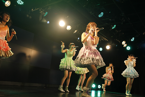 ライブは「wake up girls」からスタートし、「knock knock boom boom」「エアプレーン」と序盤から立て続けにアッパーチューンで会場を盛り上げていく。終盤では代表曲「流れ星」「GO MY WISH!」を歌い上げた後MCに突入。佐野友里子、芦崎麻耶、ハルナの3人が新曲の印象を「メジャーデビューにふさわしい楽曲」「16ビートの激しい曲」「歌詞に注目してほしい」と語り、ファンの期待を煽った。