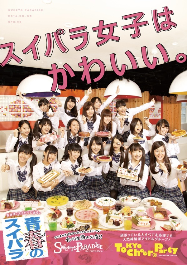 19人組のアイドルグループ・Tokyo Cheer2 Partyと、全国37店舗を展開しているスイーツ食べ放題の老舗・スイーツパラダイスとのコラボが、3月1日からスタートした。