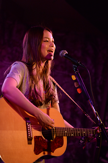 改めてMCで自己紹介。「福島から来ました片平里菜です。2人ともシャイというか人見知りなんですけど、1年前にご一緒した時にhealahさんの歌声に衝撃を受けました。共演出来て嬉しいです」とのMCからシングル曲「女の子は泣かない」へ。キャッチーな曲と歌詞が女性の心にまっすぐ入って行きそうだ。アルペジオで母の事を歌った「ぺんぺん草」から「最高の仕打ち」。セブンスのコードが印象的な、シンプルなようでいて凝った構成の曲だ。