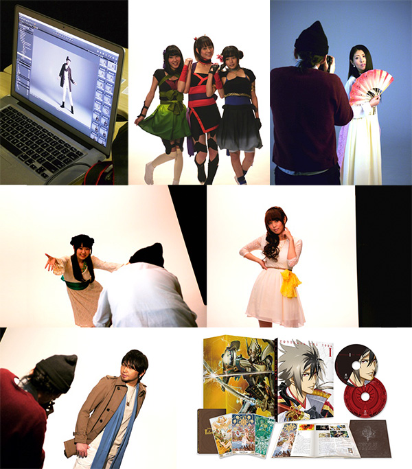 撮影最終日はジャンヌから。LiveVoiceの日笠陽子とLiveActの川上愛の2ショット撮影に続き、日笠のソロカットでは、優しくクールなイメージで撮影が進む。「こんな感じですか?」と、アートディレクター氏やカメラマン氏に聞きながら、どんどん表情が深くなり、何度も「いいすね!」の声が掛かる。そして女性スタッフから思わず漏れる「キレイ……」のため息。続くミツヒデのLiveVoice櫻井孝宏の撮影は、時折、コミカルなポーズをとって楽しい雰囲気を作り出しながらも、ミツヒデの持つ冷静さや“影”をしっかりと表現。ラストはヒミコ。LiveVoiceの東山奈央、LiveActの大野未来の2ショット撮影では初セッションとは思えないほどの息の合った表情を見せ、スタッフから「かわいい!」の声が絶え間なく続く。東山のソロカット撮影に移り、これまで撮影サンプルの中から宮野の写真を見つけ、「ワラワの婿殿じゃ~!(ヒミコ声)」と大興奮。その勢いのまま、キュートなヒミコを喚起させる写真で「かわいい!」とスタッフ大絶賛。華やかかつ楽しい雰囲気で全ての撮影が終了。