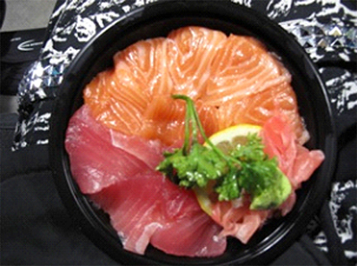 写真はライブ前に食べたサーモン&まぐろ丼!美味かった!!!