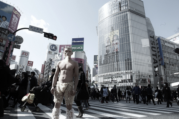 3月8日はDIR EN GREY武道館ライブ初日。これを記念してその「化身」が渋谷、新宿、原宿など都内各所に出没したという。ジャケットからそのままの姿で飛び出したその生物は「SUSTAIN THE UNTRUTH」(=嘘を継続する)というタイトルの通り、人間のエゴや社会の闇が生み出す嘘が具現化された「嘘の化身」。街を行き交う人々に「嘘をつき続けるのが人間と社会の本質」というメッセージをつきつけるかのように不気味にたたずんでいた。