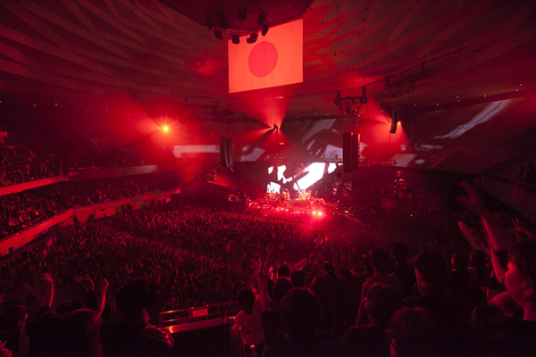DIR EN GREYは3月8日と9日の日本武道館公演では、アルバム『DUM SPIRO SPERO』の収録曲を軸に、「蒼い月」「C」「umbrella」といった過去の楽曲も披露。激しい火炎の中での熱演や、拳を突き上げシンガロングする観客の映像をバックにパフォーマンスを繰り広げる演出など、圧倒的なステージで貫禄を見せつけた。