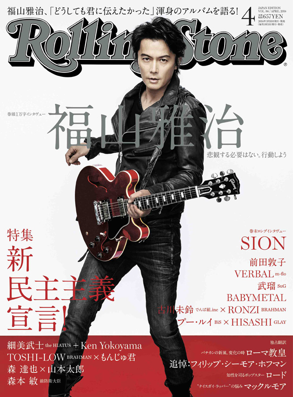 3月10日発売のロックマガジン『ローリングストーン日本版』4月号で、福山雅治が表紙を飾っている。