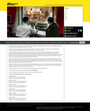 アビー・ロード・スタジオの歴史を知り尽くし、『Recording The Beatles』の著者でプロデューサーのブライアン・ケヒューとケヴィン・ライアンが主催するこのイベントは、これで3度目。ゲストを迎えるのは初めてで、今回は、スタジオが所有/保存するビンテージの機材を公開し、レコーディングの技術や機材の変化を解説したりデモンストレーションを行うという。ケン・スコットはかつてこのスタジオ2でザ・ビートルズ、ジェフ・ベック、ピンク・フロイドなどの曲をレコーディングした。