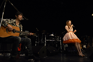アンコールでは、ミュージシャンのコミネリサが2人目のゲストミュージシャンとしてサプライズ登場。「セカンドアルバムを作っておりまして、そこで、コミネさんに一曲お願いしました。その曲を今日は披露したいと思います。去年やっていた舞台「マイ・フェア・レディ」を観に行った際に、ミュージカルソングみたいな歌を歌いたいとムリなお願いした」と、曲のイメージを紹介。