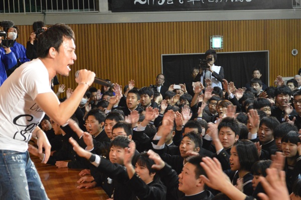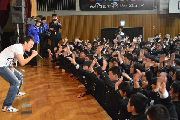 ファンキー加藤、岡山市立足守中学校の卒業生にエール。「未来は自分達が照らして明るくするんだ!」