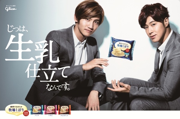 「牧場しぼり」のWebサイトでは、TVCMの他にCMメイキング映像を用意。撮影の合間に「牧場しぼり」のオリジナルソングを口ずさむユンホや、カメラの回っていないところで、「牧場しぼり」を口にするチャンミンの姿が映し出されているようだ。