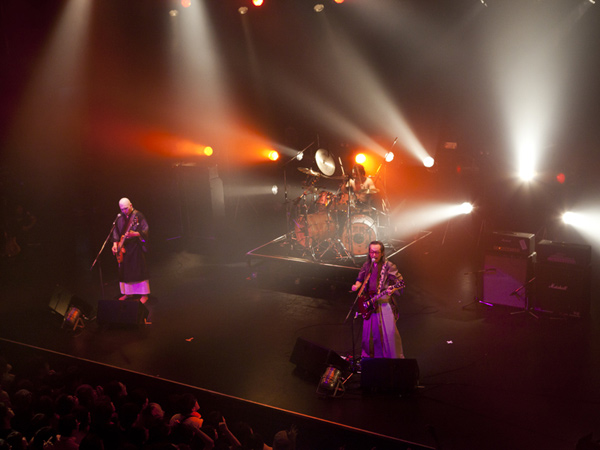 観客は、ステージで繰り広げられるメンバーのプレイに釘付けになりながらも、頭を振り、拳を突き上げ、楽曲が終わる度に大きな歓声をあげるなど、大熱狂。なかでも、ライブで久しぶりに披露された「陰獣」(1989年に「イカ天」初登場時に披露した曲)では、イントロが流れた瞬間からヒートアップしていく会場の様がとても印象的であった。その後も、ナカジマノブ(Dr)がボーカルをとる「蜘蛛の糸」では、お馴染みの上半身裸姿でカッコいい兄貴っぷりを見せながら、「今回の共演はプログレッシブな感じでいいイベント!」と叫び会場をさらに盛り上げた。