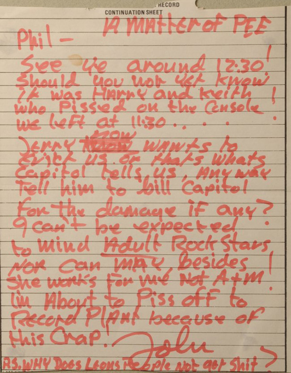 ジョン・レノン、キース・ムーンへの不満を綴った手紙がオークションに