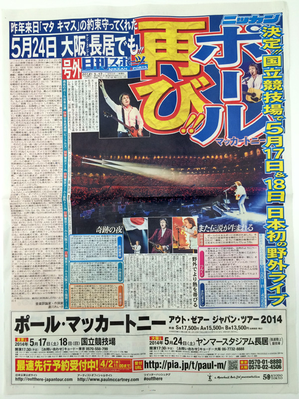 ポール・マッカートニー、5月に国立競技場2daysとヤンマースタジアム長居