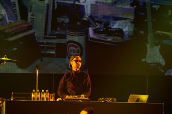 デビュー・アルバム『ザ・ハイスト』を引っ提げた今回の初来日公演は、予定されている2公演が共に即日完売という大反響を呼んでいた。午後7時、満員御礼の会場にマックルモア&ライアン・ルイスが登場すると場内は割れんばかりの大歓声に包まれライブがスタート。トランペット&トロンボーンからなるホーン・セクション、バイオリンとチェロからなるストリングス、ギター兼ドラム・プレイヤー、そして3人の女性ダンサーを従え、ステージ上を縦横無尽に動きまわるマックルモアと、DJでありながらドラムも叩くライアン・ルイスによるアグレッシヴかつゴージャスなステージに観客は圧倒されていた。全米No.1に輝いたシングル「スリフト・ショップ」ではゲスト・ボーカルのワンズが、同じく全米No.1ヒットである「キャント・ホールド・アス」では前日TV出演も果たしたレイ・ダルトンも登場し、ステージに華を添えた。