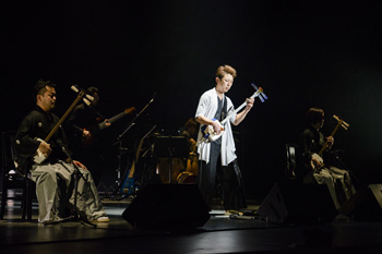津軽三味線奏者の上妻宏光が、3月22日、東京・渋谷公会堂で主催・プロデュースするイベント<日本流伝心祭 クサビ―楔― 其ノ参―国境を超え、進化する日本の表現者たち―>を開いた。上妻宏光の三味線と異ジャンルが、ぶつかり合うことが魅力の同イベント。ステージでは1月に発売したアルバム『GEN-源-』で共演した歌手の小野リサと、収録曲「ビリンバウ」を披露したほか、津軽民謡の三大節のひとつ「津軽じょんがら節」を勇ましく演奏し、集まった観客を魅了した。