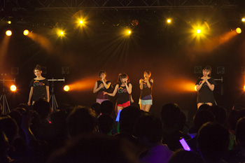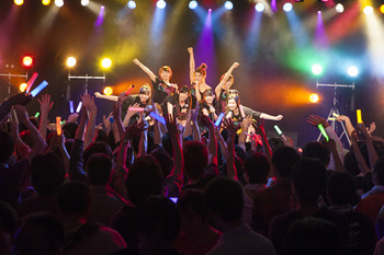 ライブはその後、帝国歌劇団のカバーである「激!帝国歌劇団」を皮切りに得意のアニソンカバーも披露。ペアに分かれ2人組ユニットによるハーモニーを会場に響かせたり、途中スペシャルゲストとしてWake up,Girls!、そしてThe Sketchbookの小原莉子(ギター)が登場するなど、終始賑わいを見せたステージは、約2時間後、幕を閉じた。