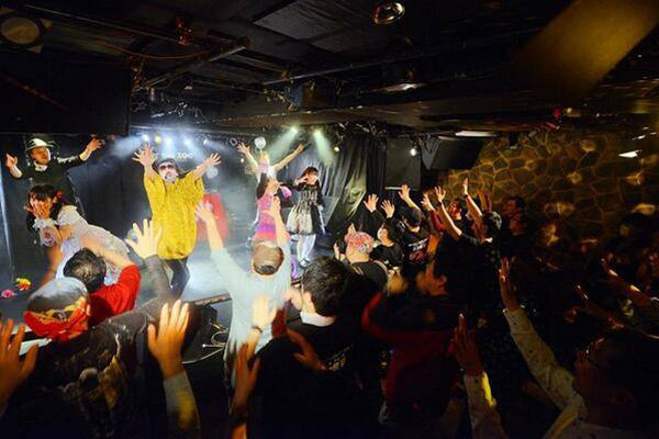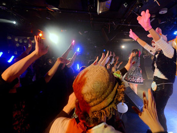 フラフープを使った独創的なダンスパフォーマンスが入る「恋愛ふぁいたー」、次曲「風神雷神」ではヘッドバッキングで客席を煽り、「きゃりおん」のサビでは会場の全員がフレーズを口ずさむ。MCというMCは一切なく、個性的なメンバーとゲストが織り成す笑いの芝居が入る。