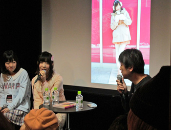 10人のアイドルの生い立ちに迫ったロングインタビューが掲載されている雑誌『IDOL AND READ』の発売記念トークショーが、4月1日dues新宿にて行われた。当日は発売中の本誌を手にしたヲタ戦士40名超が溢れる会場で、大型スクリーンに映像を映しながらのイベントとなった。司会はインタビューも担当したライターの山村哲也に本誌吉田編集長だ。ゲストは本誌にも登場している朝倉みずほ(BELLRING 少女ハート/通称ベルハー)、ももぴ(ゆるめるモ!)のふたり。“果たしてこの二人は、こういったイベントで喋るのか?”という周囲の不安を抱えたまま、トークショーはスタートした。