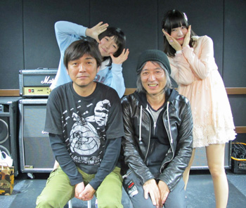 ▲前列左より山村哲也、吉田編集長、後列左より朝倉みずほ(BELLRING 少女ハート、ももぴ(ゆるめるモ!)