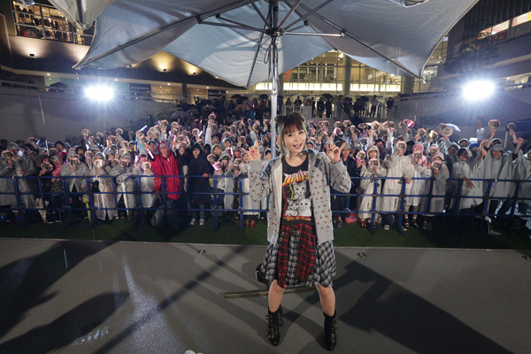「本当にこの土砂降りの中ありがとう!みんな風邪ひかないようにね。本当に一生忘れられない思い出になりました!思い返すと大事な日にはいつも雨が降っていました。これからは雨は幸運のしるしで、宇宙が垂らしてくれる貪欲汁です。愛の化石をつくろうと思って制作したアルバム『9lives』、悔いはありません!」──中川翔子