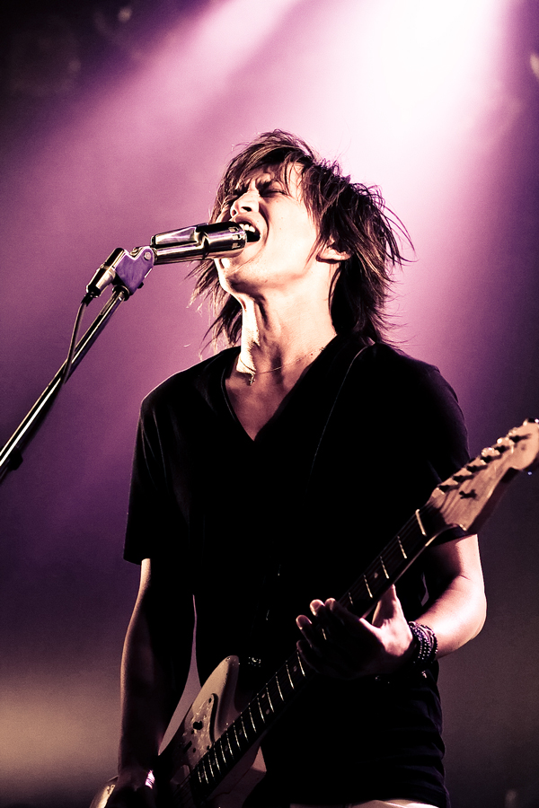 1曲目はいきなり新譜から「A Day Goes On By」。リリースしたばかりにも関わらず、サビでは客席から凄まじいシンガロングが上がり「大阪、会いたかったぞー!」という宣言とともに次曲の「One Big Blue」ヘ。1番が終わったところで一旦ブレイクを入れ客席に耳を澄ませるようなポーズを取ると、至る所からファンからの黄色い声が。次いで「No Name」でも“もっとかかってこいよ!”と言わんばかりに手を招くジェスチャーを見せオーディエンスを煽っていく。