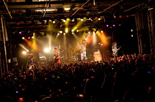 最新曲「♪ラララ♪」はリスナーの背中を力強く押すアンセムソングだ。KouichiがMCで明かしたのは、「“何かに立ち向かい「失敗したり負けること」を恐がるよりも 「何もしないこと」の方が恐い”と綴った歌詞は、自分達に向けて書いた」というものだった。現状に甘んじることなく常に挑戦を繰り返し、支えてくれるスタッフや、応援してくれるオーディエンス達と共にハッピーな空間を作り上げていこうとしている彼らの決意に、オーディエンスから大きな拍手が贈られて、この日のハイライトとなった。
