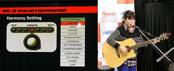 ▲ハーモニーのタイプは12種類を用意(写真左)。アコースティック・ギターとボーカルによるパフォーマンスを披露したのはナオリュウ(写真右)。