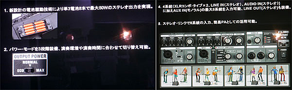 ▲電池駆動可能、必要な駆動時間とパワーでモードを選択(写真左)。多彩な入力でさまざまなシチュエーションに対応(写真右)。