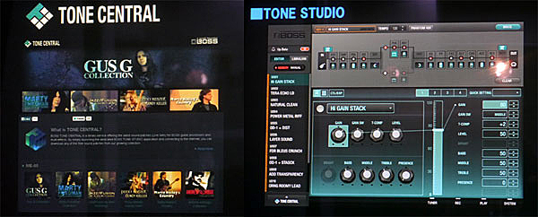 USB機能も強化。まず、「ME-80」で好評の「TONE CENTRAL」に対応。「TONE CENTRAL」は、プロ・ミュージシャンが作成した即戦力パッチが試聴&入手できるWebコンテンツ。「BOSS TONE STUDIO」というエディター/ライブラリアンソフトをダウンロードすることで、「TONE CENTRAL」にダイレクト・アクセス可能。PC上で視覚的にわかりやすいエディットが可能になるほか、ライブごとにパッチを入れ替える作業も簡単に行える。