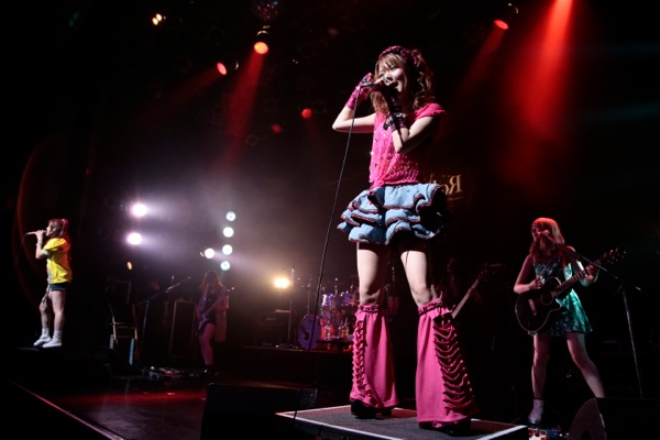 メンバーが登場するとともに勢いよく始まった曲は、ギター・魚住有希が作曲を手掛けた未発表楽曲「Sweet Tweet」。のっけから会場の高いテンションに合わせるかのような力強い曲で、ボーカル・田中れいなと岡田万里奈が間奏でジャンプをするシーンでは、オーディエンスも待ちに待った気持ちを爆発させるようなジャンプで応えていた。