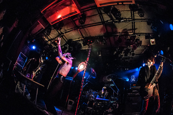 現在、ベースのテツが療養中だが、活動を止めずにこのツアーの開催を決めたMERRY。バンドが前に進んでいることを証明するかのように3曲の新曲も披露された。そのうち1曲はなんとテツ作曲によるもので、新境地と言えるダンサブルなナンバーは、会場を大きく揺らした。「地獄の底からゾンビのごとく何度も這い上がる生ける屍」という意味が込められたこのツアーだが、アンコールの「梟」では、ガラがこのツアーとファンへの想いを込めた歌詞に変えて絶叫する場面もあり、並ならぬ意思を感じさせるライヴだった。