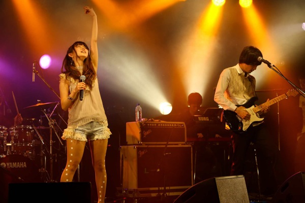夜7時のスタート。白いブラウスにデニムショートパンツで元気にステージに登場したボーカルのうらら。しかし、初のワンマンということで、感極まって泣きながらのライブとなった。