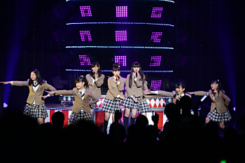 やんちゃなアイドルの直後にはアイドル優等生のさくら学院が続く。この日から新学期をスタートさせた彼女たちは転入生加入前の8人編成で、代表曲の「FLY AWAY」「School days」などを披露した。ついに最高学年でグループを牽引していく立場になった菊地最愛、水野由結を中心にしたパフォーマンスでは、この日だけの変則フォーメーションながら元気いっぱいの躍動的なステージとなった。