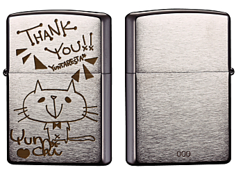 また、Yun*chiが独自にデザインした受注限定生産のZippoオリジナルライターの予約受付も始まった。このZippoオリジナルライターのデザインにはYun*chiの愛猫である「ふりかけ」が描かれており、「使う方の和みのアイテムになれれば」との想いが込められている。