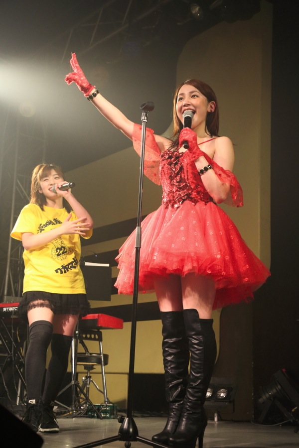 昼公演にてきっかのお祝いに駆けつけたアップアップガールズ(仮)の仙石みなみ。吉川友にとって約1年半ぶりのシングルは、みーこの口からサプライズとして発表された。