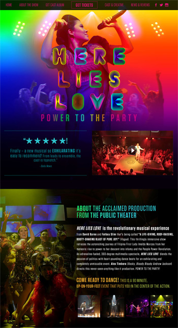 『Here Lies Love』はオフ・ブロードウェイの作品に贈られる<Lucille Lortel Awards 2014>で11部門にノミネート。主演女優賞、コスチューム・デザイン、ライティング・デザイン、サウンド・デザインの4部門を受賞した。