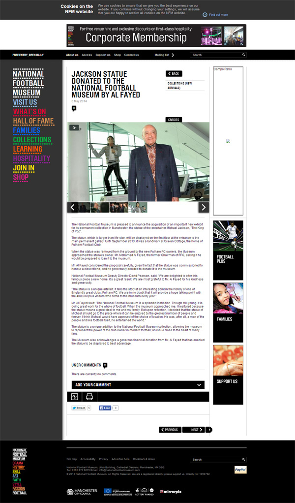 フラムFCが降格したのは、マイケル・ジャクソンの銅像を撤去したから?