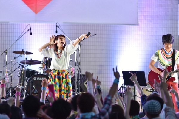 7!!の出演はイベントライブ終盤。「ハイサイ~!」と元気いっぱいの掛け声で4人がステージに登場した。ライブはtvk『saku saku』2014年度オープニングテーマとしてオンエア中の8thシングル「メロディ・メーカー」ほか、映画『今日、恋をはじめます』テーマソングの「弱虫さん」、ヒット曲「バイバイ」など合計5曲を披露して、会場を爽やかムードに染め上げた。