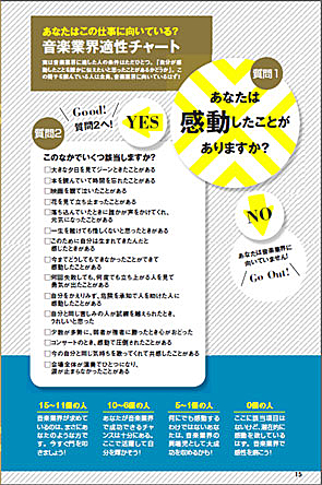 答えは「NEXT MUSIC BUSINESS」でチェックを。このほか、あなたが音楽業界の仕事に向いているかどうかをチェックできる「音楽業界適正チャート」も掲載されている。質問にYES/NOで答えるだけで適正がわかるので、ぜひチャレンジしてほしい。