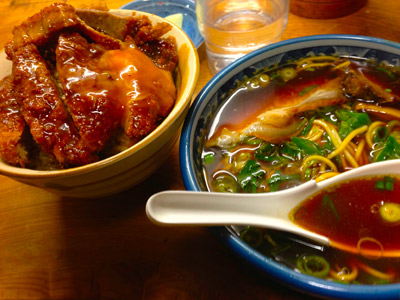 デミカツ丼と中華そばの組み合わせで食べる文化が定着しているそうで、違うメインの料理を一回で楽しめるのは大満足。