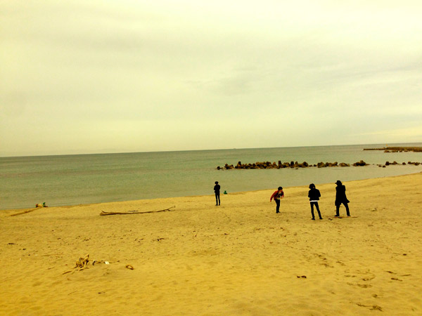 新潟の海とボヘミアンズ3人とスタッフりく。