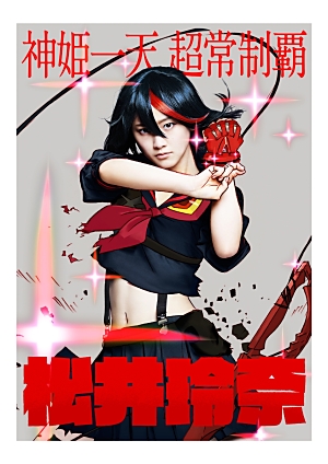 こちらは、『キルラキル』製作委員会の全面協力のもと、短い時間の中で衣装の制作や撮影、さらにアニメパーツとの組み合わせや描きたしなど細かい作業が行われ、作品が完成。松井は自身のTwitterにて「これが私の本気!今までで1番のお気に入りです。」と作品を紹介しており、ポスターの出来にご満悦の様子だ。