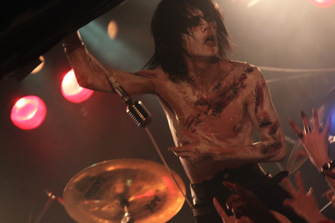 これはMERRYのフロントマンであるガラの、去る2月末の発言である。その約1ヵ月半後に開幕を控えていた全国ツアー<THE ZOMBIE~地獄に堕ちた野郎ども~>に向けての決意を語るなかで出てきた言葉だった。事情を知らない読者には「なんか深刻そうだけど、いったい何があったんだ?」と思われるかもしれないが、このバンドは現在、ベーシストのテツを欠いた状態にある。2013年10月のツアー中に事故に見舞われ頚椎に損傷を負い、治療を経て回復に向かってはいるものの、依然としてリハビリ生活が続いているのだ。そして同事故後から年始にかけてのライブについては、複数のベーシストをゲスト・ミュージシャンとして招きながら行なわれてきたが、今回のツアー開催に際してバンドが下したのは“4人だけでの敢行”という決断だった。もちろんそれが、彼ら自身が悩みに悩み抜いた結果の選択だったことは言うまでもない。