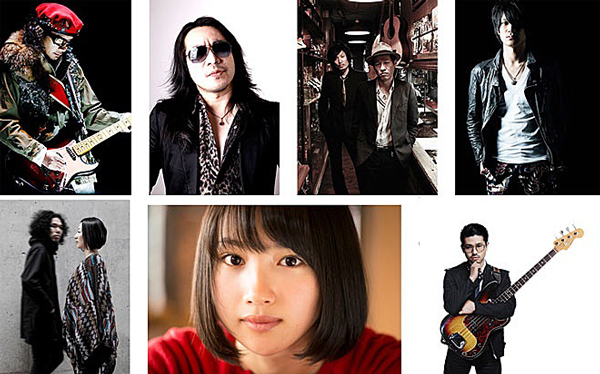 ▲左上より:Ken、Kelly SIMONZ、武藤昭平withウエノコウジ、佐々木亮介(a flood of circle)、UHNELLYS、新山詩織、ハマ・オカモト。