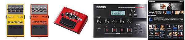 ▲ステージでは、歪み系BOSSコンパクト・シリーズ・スペシャル版OD-1X&DS-1X、ギター弾き語りにぴったりなハーモニーを自動的に生成するVE-2、デスクトップタイプの最新マルチ・エフェクターGT-001などをデモ予定。GT-001、GT-100 Ver.2、ME-80などが対応するパソコン経由でアーティスト制作によるエフェクトパッチがダウンロードできるTONE CENTRALが試せる展示も。