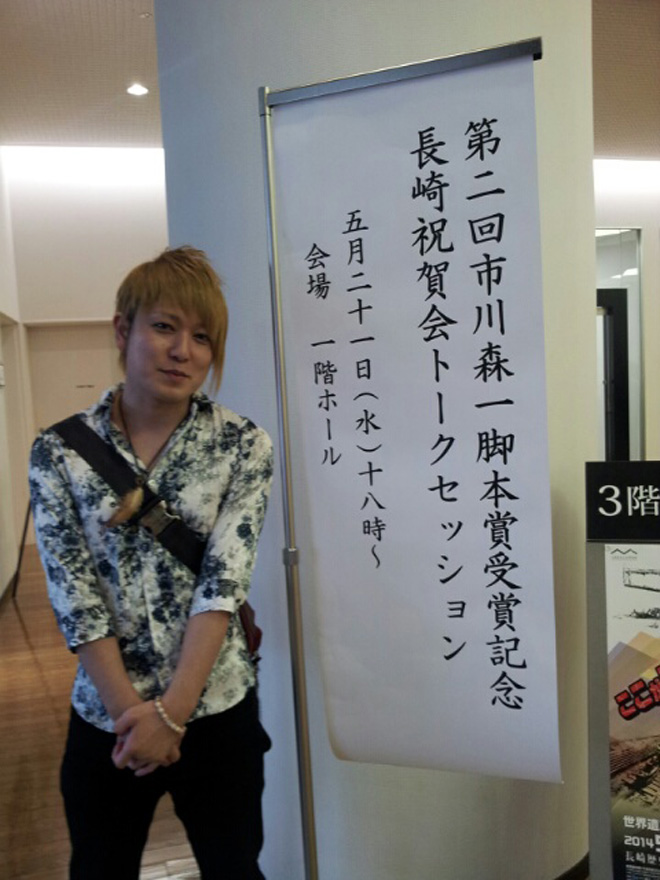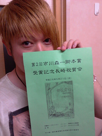 今回の祝賀会は、平成23年12月に逝去された、長崎県の県民栄誉賞受賞者であり、諫早市出身で日本を代表する脚本家である市川森一氏をたたえ、次代を担う若手脚本家を選奨するために創設された「市川森一脚本賞」の第2回の受賞を記念し、ゆかりの深い長崎で開催されたという内容の祝賀会でした。