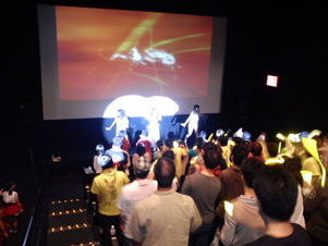 会場に音響設備を用意、スクリーンを使ってデジタル映像を楽曲に合わせ投影、当日は会場となったシアターが満席になるという状態になりました。
