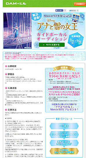 映画『アナと雪の女王』の主題歌「Let It Go~ありのままで~」のガイドボーカルを歌ってくれる人を募集するガイドボーカルオーディションが、DAMでスタートした。