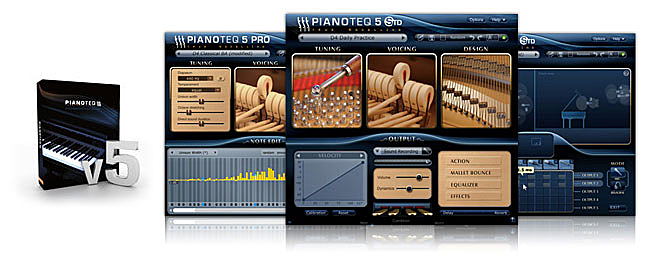 Pianoteqの最初のバージョンが2006年にリリースされてから、Pianoteqのフィジカル・モデリングはバージョンアップの度に改良されており、「Pinoteq 5」ではアタック音とサウンドボードのモデリングが刷新されている。この結果、Grand Piano D4、Bluthner Model 1、YC5 Rock PianoとU4 Uprightの明瞭度と迫真性が向上している。そして、「Pianoteq 5」のために開発された新しい「Grand Piano K2」が追加。複数のピアノから最高の要素を組み合わせた複合モデル。このモデルに採用された211cmのキャビネットから生まれるサウンドは、暖かみと鮮やかさを絶妙なバランスで兼ね備え、K2の壮大なピアノ・サウンドの重要な要素となっています。