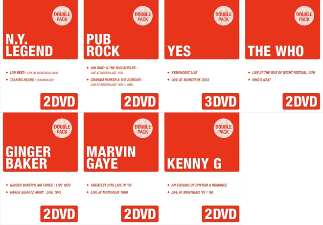 その他に6月16日、17日に日本公演を行うケニー・Gを始め、マーヴィン・ゲイやジンジャー・ベイカーといった実力派アーティストの名演ライブもラインナップされている。定評あるこれらの人気DVD作品が2DVDで1枚あたり約1800円、3DVDで約1500円というスーパー・プライスでパッケージされているので、是非ともご注目を。
